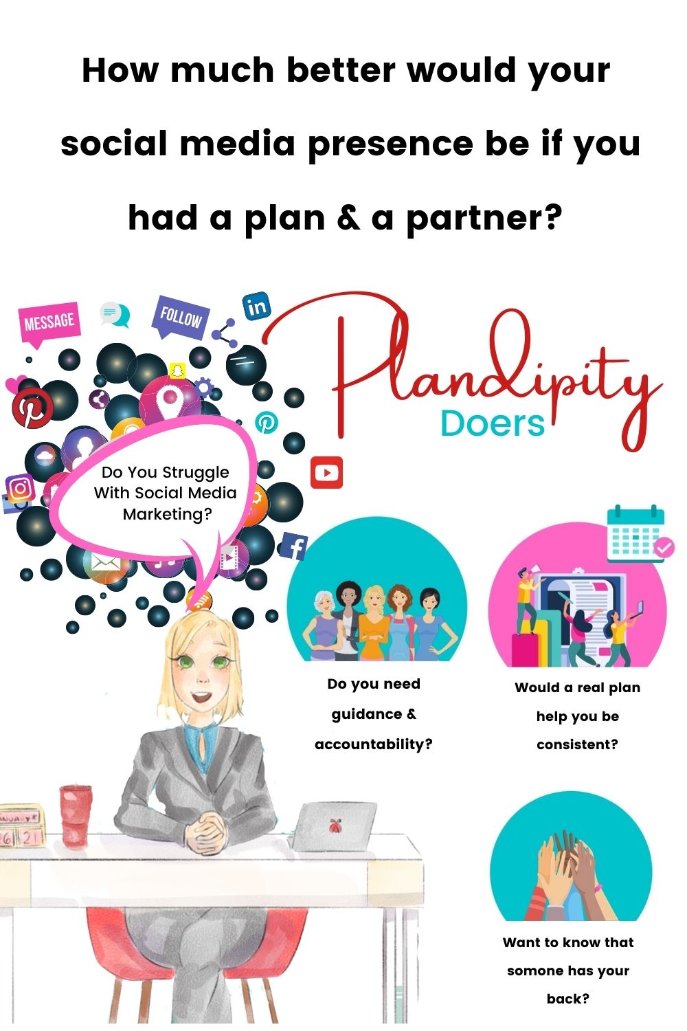 Private Online Community- A Private Plandipity Community. Where you can share ideas & inspiration, ask for feedback, and network with the group. It is also where all the goodies are found like the training library and content freebies. When you have support from like-minded women you will find some of the overwhelm and stress you have been feeling will start to melt away.
